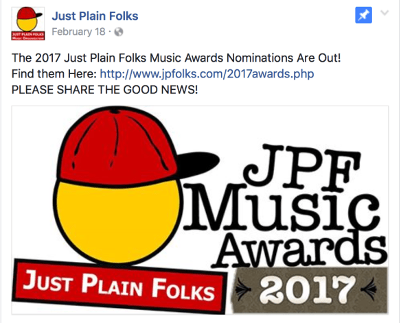 Brian Whitney, CEO and Founder of Just Plain Folks, writes of the nomination, “It’s a big deal: 17K albums and 240K songs were entered for the current awards, which cover the expanse of time since the last awards in 2009.”
