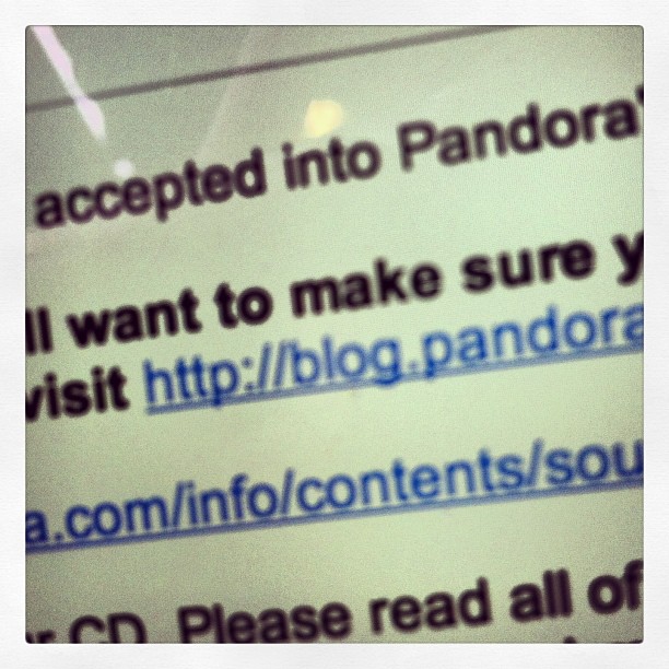 A-Accepted in Pandora 04/09/13Yeah! Whoohoo! I’ll be on Pandora Radio by July!